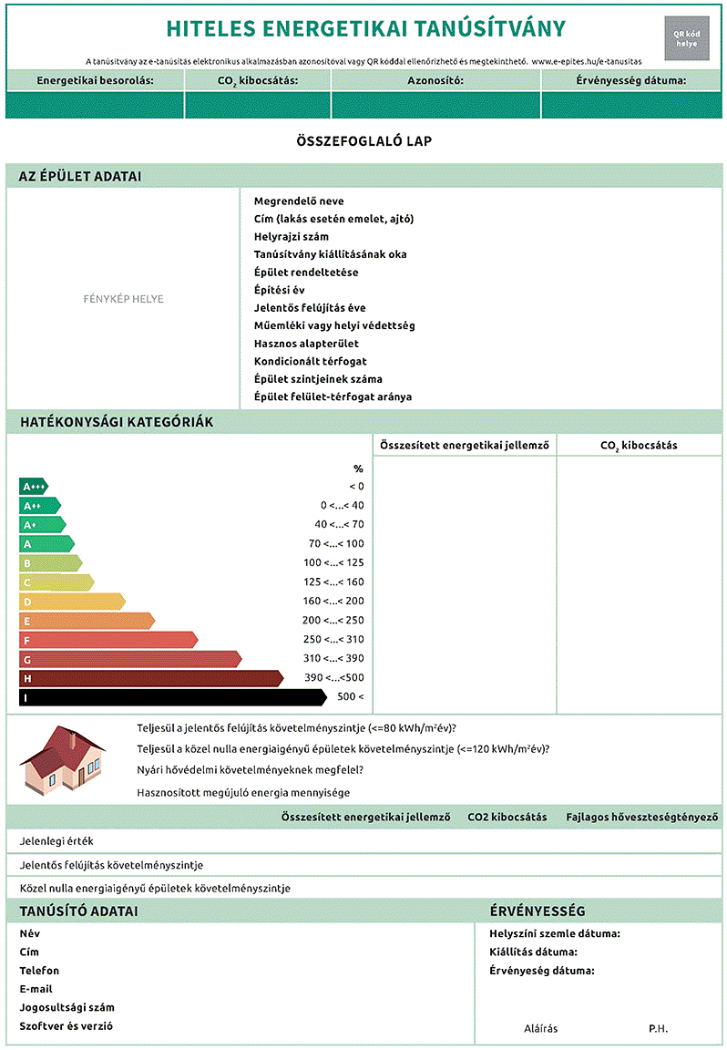 Az új energiatanúsítványnak tartalmaznia kell többek közt