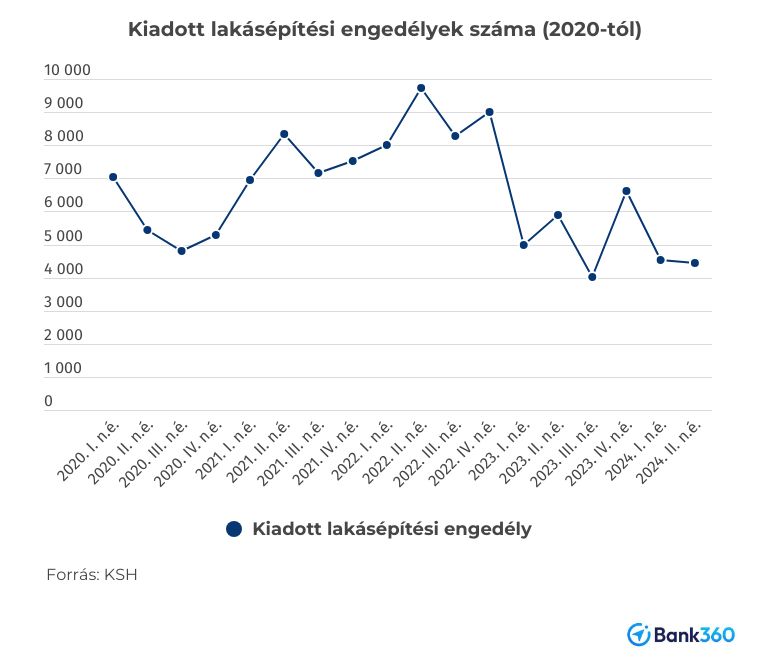 A kiadott lakásépítési engedélyek száma azonban valamelyest csökkent, a második negyedévben 4448 ilyen engedélyt adtak ki. 2024. január és augusztus között a kiadott engedélyek száma összesen 11 399 volt, az előző év ugyanezen időszakában még 13 491, ami valamivel több mint 15 százalékos visszaesést jelent.