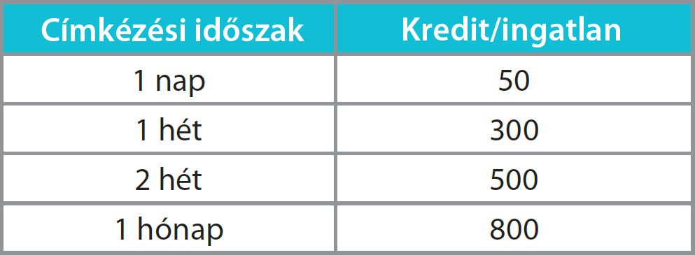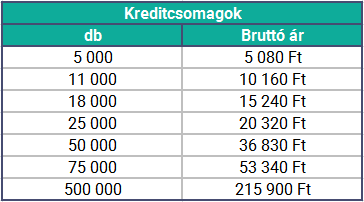 Krediteinket csomagokban rendelheti meg, melyek aktuális árait az alábbi táblázat tartalmazza.