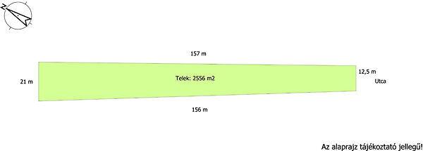 Utcafronti telekszélesség 12,5 méter hosszúság 157 méter.