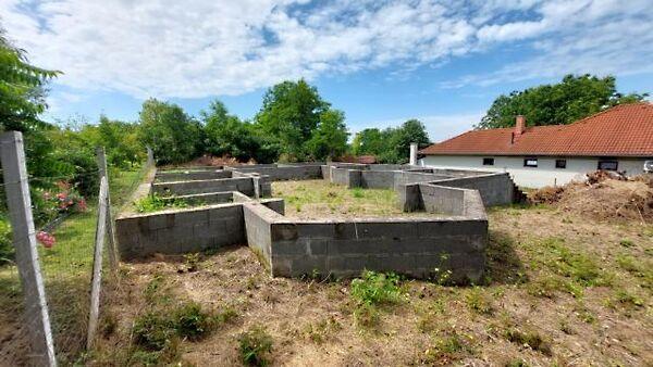 Mernyén, Kaposvártól 20 km-re a Balaton felé kínálunk megvételre egy összközműves belterületi építési telket, ahol a leendő ház alapjai már megvannak. A telek 1198 m2-es, van egy enyhe oldallejtése, amit a tervezők természetesen figyelembe vettek. A megálmodott ház lakóterülete 148 m2, plusz a 37 m2-es intim terasz hátul, bruttó 185 m2. A tervek szerint az otthon középpontja a nappali-étkező-konyha együttese, lenne három normál méretű szoba, valamint egy különlegesebb alakú „billiárd terem”, fölötte kis toronnyal. Ezen kívül a tervrajzon szerepel még fürdő, WC, kamra, gardrób. De jelenleg ez csak terv és az alapozás, ezen bármit lehet módosítani saját ízlés, elképzelés szerint. Ami biztos, hogy a telek nagyon jó helyen fekszik, közel a település központjához, de egy csendes, nyugodt helyen. Az új 67-es gyorsforgalmi út segítségével Kaposvár 15 perc alatt elérhető, a Balaton 30 perc alatt, és Budapest is másfél órán belül.