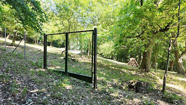 A telek mérete 7850 m2, az egész terület teljesen bekerített tavalyi évben felhúzott vadhálóval és új kapuval.