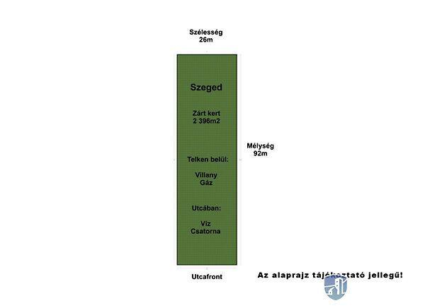 Eladásra kínálok Szeged-Szőregen 2 396 nm-es zárt kertet, építkezési lehetőséggel. A központi és nyugodt elhelyezkedés, valamint a kivételes fekvés lehetővé teszi egy reprezentatív épület építését és értékes befektetési lehetőséget jelent.