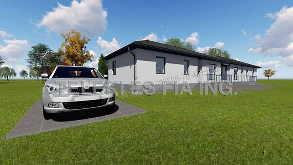 A Teleki és Fia Ingatlan értékesítésre kínálja Albertirsán családi házas övezetben ezt az összközműves telken épülő kétlakásos családiház jobb oldali lakását. Az épület bal és jobb oldalán egy-egy 72.8 nm.-es hasznos alapterületű lakás kerül megépítésre. Az épület beton alapra 15 cm.-es grafitos homlokzati hőszigeteléssel ellátott 38.-as tégla falazattal épül. Fafödém , 25 kőzetgyapot szigeteléssel . Alacsony hajlásszögű faácsolatra barna vagy vörös Bramac Nova betoncserép héjalás kerül.