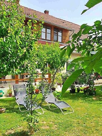 Az udvar parkosított, árnyas fákkal és bokrokkal, ami a kikapcsolódáshoz pihenéshez ideális.