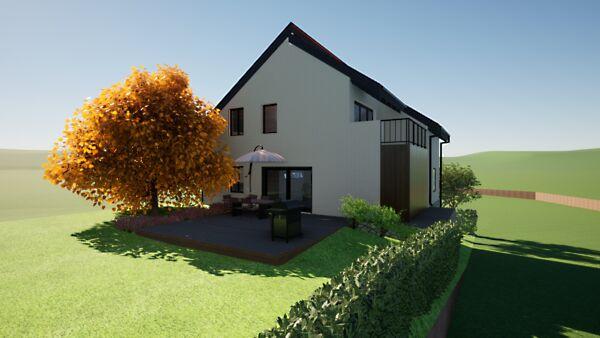 A 15 cm dryvit homlokzati hőszigeteléssel ellátott, összközműves ingatlan fűtéséről és melegvíz ellátásáról 14 kW-os levegő-víz hőszivattyú gondoskodik (hőleadás: padlófűtés).