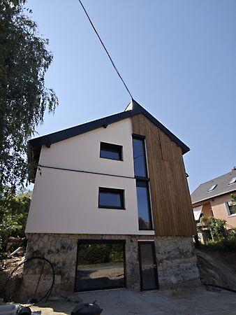 Az új fedélszék 15 cm purhabot, és 15 cm kőzetgyapot szigetelést kapott, terrán cseréppel és színezett bádogozással.
