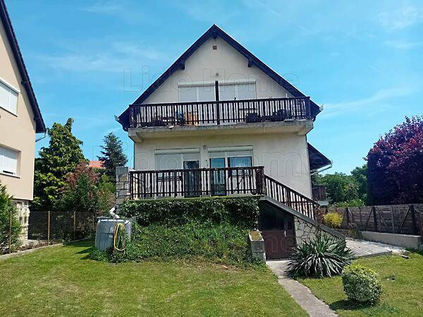 Balatonfüreden szép balatoni panorámás, vízközeli néhai vállalati üdülő,nagy parkkal,grillezővel, gyümücsfákkal,játszótérrel,kerti zuhanyzóval,nagy panorámás erkélyekkel.A tulajdonos fokozatosan újította fel.Gáz központifűtés mellett cserépkályha is van.Legalsó szinten 2 helységből álló pincebár(30 m2 ).A magasföldszinten 4 szoba,előszoba,konyha,spejz,fürdőszoba,wc,kazánház,raktár,20 m2-es fedett terasz.Első emeleten:3 szoba,előszoba,konyha,fürdőszoba+szauna,wc,15 m2-es terasz balatoni kilátással.Fent 2 szoba,fürdő+wc,csodálatos panoráma a Balatonra.