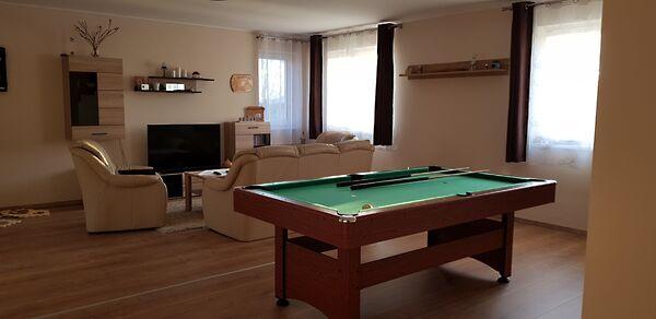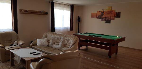 Az egyik lakrész 225m2, melynek földszintjén található 50m2-es teraszkapcsolatos amerikai konyhás étkező-nappali, ahol nagyobb család vagy baráti társaság kényelmesen elfér a terített asztalnál. Továbbá 1 hálószoba hozzá kapcsolódó tágas fürdőszoba sarokkáddal és kétszemélyes zuhanyzóval, külön nyíló 2 szoba, gardrób, fürdő-wc, háztartási helység, tároló, kamra, közlekedő, előtér, lépcsőház. Az emeleten nappali, külön nyíló 2 szoba, fürdőszoba sarokkáddal, gardrób, közlekedő került kialakításra.