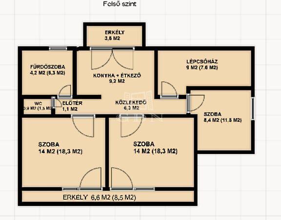 Az emeleten 2 lakószoba előtti erkély a kertre, illetve az utcára néz, míg a konyha-étkezőből kilépve a Balatonra néző kilátás tárul elénk.