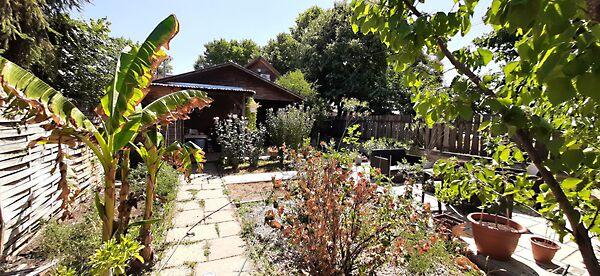 A telken egy főépület, önálló lakrész, kerti kiülő, kemence, garázs van.
