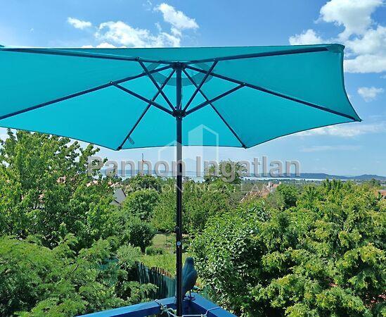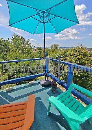 A KLÍMÁVAL felszerelt emeleti lakás 65 nm-es, nagy nappalival, konyhával, fürdővel, hálószobával, télikerttel, INFRASZAUNÁVAL, tetőtéri szobával és pazar TIHANYI PANORÁMÁS terasszal rendelkezik.