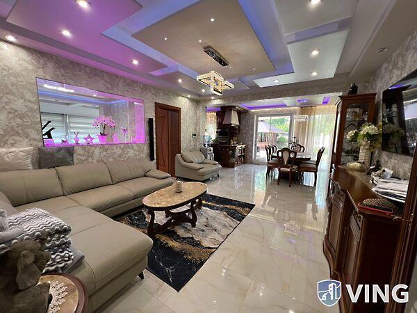 A 332 square meters independent luxury property for sale in Liget residential park, a prominent part of Debrecen. The lower level of the house has a living room, dining room, kitchen, an entrance hall, and a toilet. Naturally, there is also a large double garage and a terrace on the ground floor. On the upper level, there is a large space from which you can reach the three bedrooms and the two large bathrooms. The upper level also has a wardrobe, laundry and kitchen, and each bedroom has a terrace. The lot is large, 760 square meters, plus another lot of similar size is fenced off at the back. The garden is beautifully landscaped, and there is also a beautiful terrace equipped with everything. A heated swimming pool in front of the terrace provides residents with a pleasant feeling of luxury at home. The house has a high technical content and is equipped with all extras, fully furnished. Located in the most elite part of Debrecen, surrounded by high-end, beautiful properties.