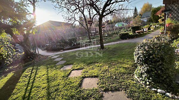 Két aszfaltos utcáról is bejuthatunk a telekre, az egyik ilyen beállóhoz garázs is tartozik. A kert gondosan karbantartott, állandóan napfényben fürdik.