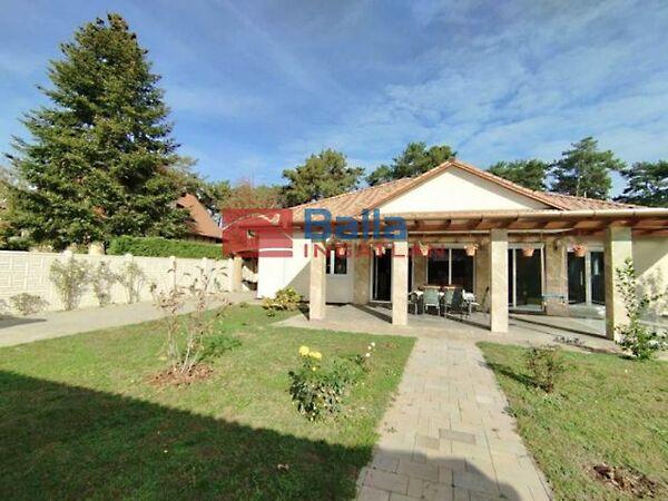 Az ingatlan 800m2-es parkosított telken fekszik, melynek végében egy szintén minőségi kivitelezéssel készült 12m2-es „nyári konyha”+27m2-es terasz került kialakításra, csatlakozva a 25m2-es garázshoz.