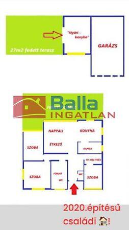 A 2020-ban épült Minőségi Kivitelezéssel, Prémium Anyagokból készült (körbejárható) elő-és hátsókertes, Duplakomfortos családi ház nappali+3 szoba+ fürdőszoba+ Terasz elosztású.