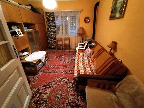 A hosszú veranda jellegű előszobából nyílik a fürdőszoba WC-vel, a konyha és a három egymásból nyíló szoba. A konyhához két kamra is tartozik.