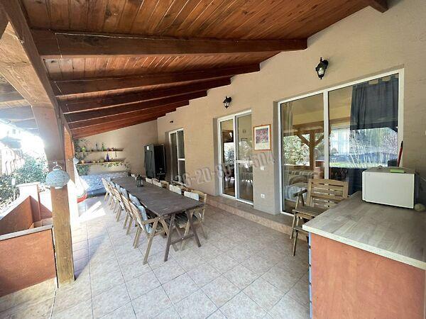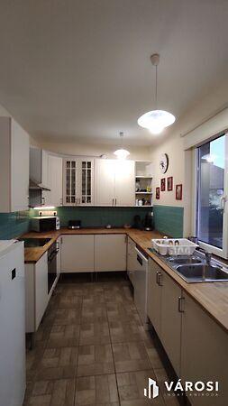 Helyiségek: 3 szoba, konyha, fürdőszoba WC-vel, külön WC, mosókonyha, erkély, térkővel burkolt fedett terasz.