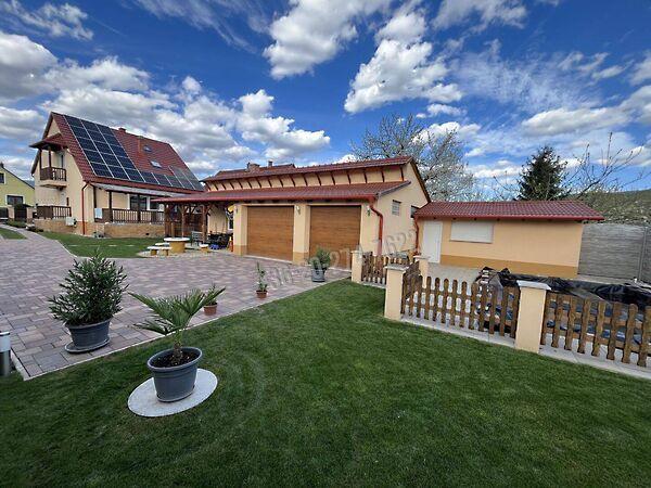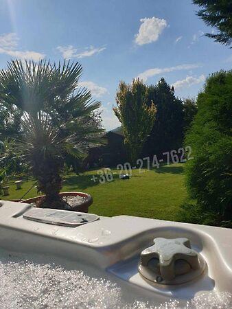 - **Udvar:** melléképület műhellyel és tetőtéri tárolóval, szerelő aknás garázs 2 autó számára, Hörmann garázskapuval, medence, toalett és medence bár
