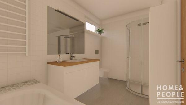 106,62 m2-es lakóterület, 3 db hálószoba, amerikai konyha nappali, fürdő, háztartási, gépészet
