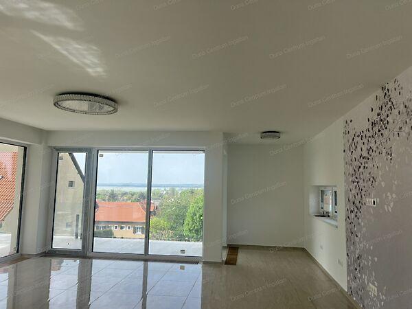 Gyenesdiás csendes részén luxus kivitelű, új építésű, panorámás családi ház kulcsrakészen eladó. Az ingatlan földszinti részén három szoba, kettő fürdőszoba, gardrób, háztartási helyiség, míg az emeleti részen dupla garázs, tágas, világos nappali, konyha-étkező kapott helyet. A ház előtt 8X4 m-es medence kapott helyet. Az ingatlan modern, kiváló minőségű anyagok felhasználásával épült. Az ár tartalmazza a teljes bútorzatot, parkosítást.