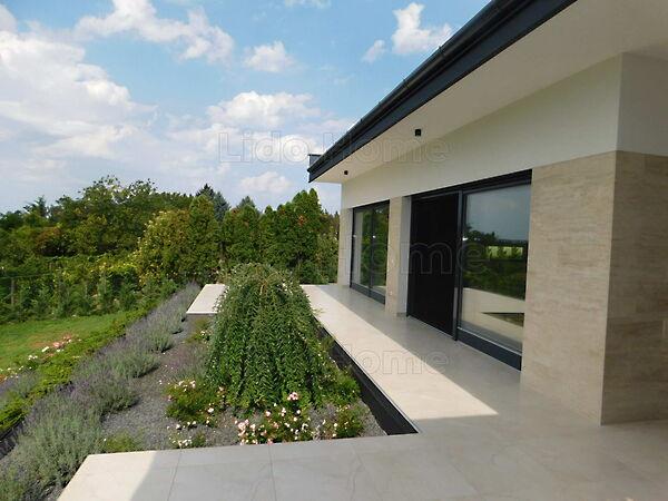 Az új építésű családi ház 1972 m2-es területen, csendes környezetben helyezkedik el. Az egyszintes ház, négy hálószobával, nagy amerikai konyhás nappalival, kettő fürdőszobával, külön WC-vel, terasszal, dupla garázzsal, kényelmes életteret biztosít Ön és családja számára.
