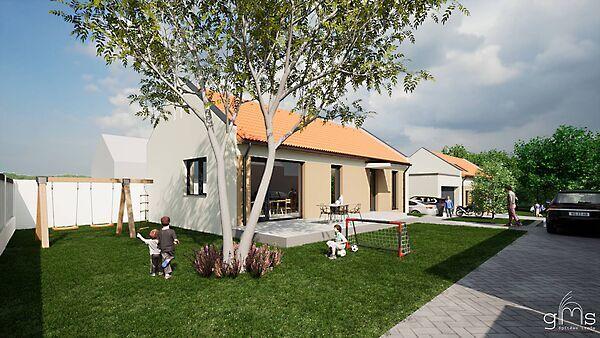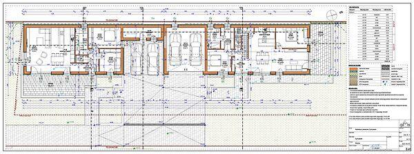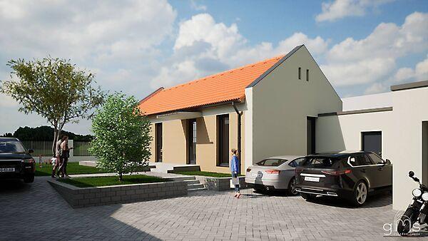 Ház helyiségei: Nappali 23,04 m2, Konyha-étkező 20,98 m2, 2 háló (10,23 m2, 14,1 m2 ), 7,11 m2 fürdő, 8,34 m2 gépészet, 1,73 m2 WC, 8,07 m2 közlekedő + 30,44 m2 TERASZ.