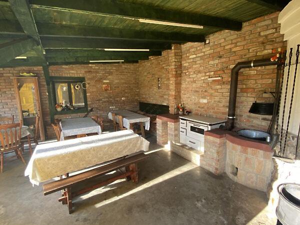 Eladó a fotókon látható utcafronti ház, mintegy 125 m2 kert résszel, 20 m2-es melléképülettel és 40 m2-es fedett terasszal. Az autó beállás mindkét részen, külön kapun lehetséges.