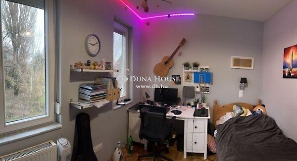 Csillaghegy kedvelt részén eladó házrész ami egy kitűnő állapotú és elrendezésű 100 nm en amerikai konyha 3 szoba mellékhelyiségek nagy terasz elrendezésű napfényes emeleti lakásból kizárólagos használatú tágas kertrészből a földszinten önálló bejáratú minigarzonból valamint saját pincerészből áll Az ingatlan valamennyi lakószobája rendkívül világos külön nyílik igényes padlóburkolattal nyílászárókkal ellátottak Az önálló közműmérőkkel rendelkező ingatlan ablakai ajtajai fából és hőszigetelő üvegből készültek a fűtést kombi gázkazán és hőleadóként radiátorok szolgáltatják A nappali – konyha – étkező csaknem 40 nm es közvetlen kijárattal a teraszra Cseresznyefából készült beépített konyhabútorok rejtik a konyhai gépeket: kerámialapos tűzhely toronyként épített sütő mosogatógép konyhai elszívó méretes gránit előkészítő pult A mázas cserépből készült fa tüzeléses kis helyet foglaló kandallóval felszerelt nappali frontját szinte teljes szélességében ablakok foglalják el teret adva a beáramló fénynek Minden hálószoba teljesen szeparált a nappalitól valamennyi egész szoba így elegendő teret biztosít az ágyon kívül egyéb berendezési tárgyaknak is A káddal és zuhanykabinnal felszerelt nagy ablakon szellőző fürdő kifejezetten tágas elfér benne mosó és szárítógép egyaránt; a WC önálló helyiségben kapott helyet Tarolásra spájz áll rendelkezésre ami a kabátoknak cipőknek helyet adó a lakás lépcsőteréhez csatlakozó előszobából nyílik A házrészhez tartozik a földszinten egy teljesen önálló bejáratú hőszigetelt minigarzon kis szobával és zuhanyzó WC vel fekvőgalériával ami akár kezdőlakásként akár irodaként vagy bérbeadás útján is hasznosítható Rendelkezésre áll egy pinceszinti tároló is Az ingatlan mindenkori tulajdonosának kizárólagos használati joga van egy fizikálisan is lekerített 165 nm es kertrészre Kitűnő infrastruktúra párosul az ingatlanhoz: üzlet iskola óvoda vendéglő buszmegálló sportolási lehetőségek Duna pár lépéssel elérhetők Referencia szám: HZ015308 IN