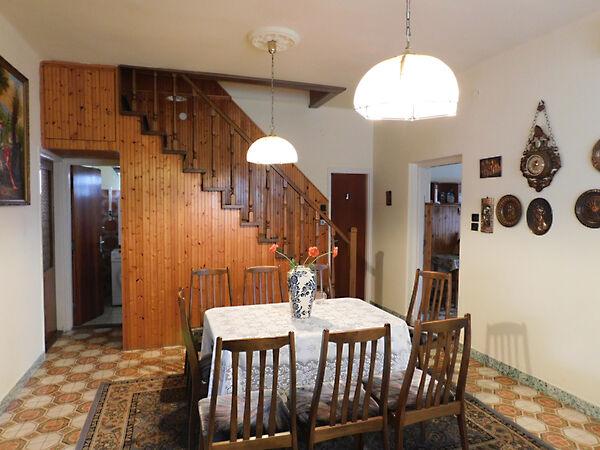 A ház lakótere 2 szinten, 145m2, nagyon tágas, karbantartott -de korszerüsítendő állapotban.