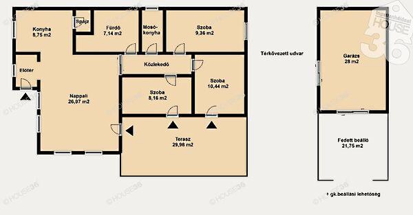 Kecskemét Kadafalván új építésű részen erdősávval szemben 530 m2 es telken netto 81 m2 es nappali 3 szoba mosókonyhás családi ház beállt kerttel garázzsal fedett beállóval eladó KIVÁLÓ LOKÁCIÓ Tudnivalók: tégla kerítés kovácsoltvas elemekkel sarki telek 2 utcára szóló frissen aszfaltozott utca házzal szemben erdő számtalan parkolási lehetőséggel udvarban 300 m2 térkő parkosított telek öntöző rendszerrel beállt kert kutyakennel 27 m2 es burkolt terasz tégla építés 10 cm homlokzati szigetelés 30 cm födém szigetelés fafödém 28 m2 es garázs 24 m2 es fedett beálló elektromos kapukkal spájz mosókonyha gázcirkó fűtés padlófűtés új BOSCH kazán inverteres klíma műanyag hőszigetelt nyílászárók redőnyözve szúnyoghálókkal gépesített konyha Whirlpool és Gorenje típusú gépekkel riasztó rendszer kamerarendszer dupla mosdó 2 wc igényes burkolatok friss festés Az adatok tájékoztató jellegűek FIGYELEM Az adatok Megbízónktól kapott adatok alapján készült pontosságáért felelősséget nem tudunk vállalni Hívjon szolgáltatásaink vevőink részére díjmentesek Amennyiben eladó vagy kiadó ingatlana van kérem forduljon hozzám bizalommal Az iroda legfrissebb aktuális kínálatát a HOUSE36 saját weboldalán találja