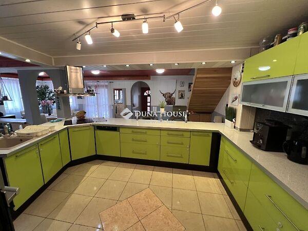 Kiskunfélegyháza Aranyhegyen eladásra kínálunk egy amerikai konyhás nappali 8 szobás könnyűszerkezetes családi házat A ház lakótere 283 m2 a telek pedig 1388 m2 teljesen körbekerített Hatalmas teraszokkal rendelkezik amiből a legnagyobb fedett és 30 m2 A ház 2022 ben kapott egy 15 cm vastag kőzetgyapot szigetelést és részben nyílászárók is ki lettek cserélve A parkosított udvaron dupla fedett beálló és egy 41 m2 es garázs és tárolók is találhatóak Csendes nyugodt utcában helyezkedik jól megközelíthető Kecskemétről 10 perc Kiskunfélegyházától 8 perc alatt elérhető autóval Az ingatlan jellemzői: 8 szoba amerikai konyha nappali étkező 2 fürdőszoba wc vel és 1 külön wc háztartási helyiség hűtő fűtő klíma garázs elektromos nagy kapu parkosított fásított udvar 2011 es építés Az ingatlant kifejezetten ajánlom olyan családnak akik biztonságos környéken jó szomszédokkal keresnek otthont és szeretik ha van tér kert Akár vállalkozás vagy befektetés számára is megfelelő lehet a jó megközelíthetősége és a nagy telek miatt A DUNA HOUSE teljes kínálatával állok rendelkezésére INGATLAN HITEL ÉRTÉKBECSLÉS ENERGETIKA További információkért keressen a megadott elérhetőségek egyikén Tel : 36 70 884 0033 E mai: jerkovics martin@dh hu Referencia szám: HZ093988