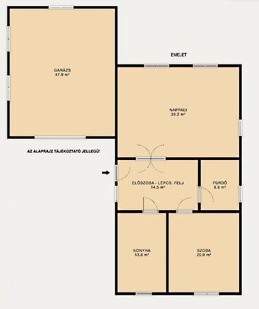 • Garázs: 50 m², alatta további 50 m²-es helyiség, amely nyári konyhának, wellness-részlegnek (szauna, jacuzzi stb.) vagy egyéb célra is kialakítható