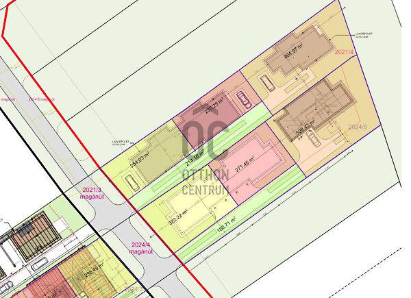 1 ikerház + 1 önálló családi ház épül egy telekre, önálló kerthasználattal.