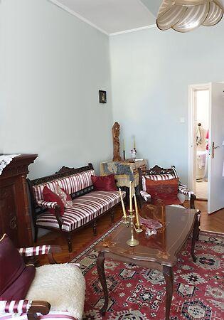 Az első lakrészben találjuk, a 3 szobát, konyhát, a csodálatos, impozáns ebédlőt, fürdőszobát, gardróbot, spejzt. Az ingatlan falazata kő és tégla. 2018-ban az ingatlan felújításon esett át. Villanyvezeték, tető, hőszigetelt üvegű, fa nyílászárók találhatóak a házban. Az otthon melegét kandalló és Héra konvektor adja. A hűtéséről természetesen klíma gondoskodik. A meleg vizet gázbojler biztosítja. Az első részhez tartozik 1 db száraz boros pince is.