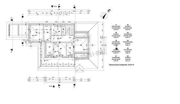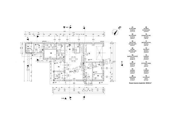 Az alaprajzoknak, látványtervnek megfelelő családi ház építését kezdték meg az átlagosnál nagyobb építési telken. A külső, belső falak, a tető, az ereszcsatornák elkészültek. A falakban az áram vezetékek csövezése, az aljzatokban a víz és a szennyvízvezetékek el lettek helyezve. A födém monolitból készült, az alsó szint tetőszerkezete 20 cm vastagságú kőzetgyapot szigetelést kapott.