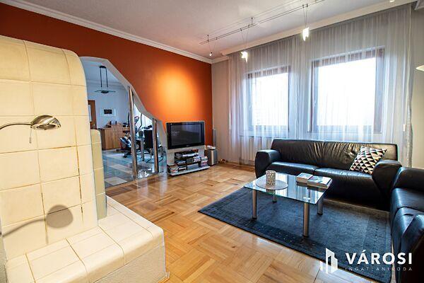 Nagykanizsa csendes, közkedvelt, kertvárosi részén, a Miklósfai városrészben vált eladóvá ez az igényes kialakítású, tágas több szinttel rendelkező családi ház. A közel 1200 nm nagyságú gondozott, parkosított területen, a lakóépületen kívül egy akár állandó lakhatásra is kialakítható, 134m2-es műhely is helyet kapott. A műhely saját egyedi fűtéssel, és fürdőszobával is rendelkezik. ( Lehetőség szerint beltéri medence is kialakítható) A területre való bejutás, elektromos kapun keresztül megoldott. A lakók biztonságát mind a lakrészben felszerelt riasztóegység és az udvaron elhelyezett, kültéri speciális riasztórendszer biztosítja. Az udvarban a gyalogos illetve a gépkocsi közlekedésre térkőburkolat került lerakásra. Az ingatlan jelenleg is remek állapotnak örvend a tulajdonosok gondos munkájának és folyamatos karbantartásának köszönhetően. Az ingatlanban és a műhelyben is 3 fázisú erősáram lett kialakítva. A teljes vízhálózat, víz lágyító rendszerrel lett felszerelve. A külső nyílászárók fából készültek duplahőszigetelt üveggel, valamint a beltéri ajtók is fa profilszerkezetűek, hőszigeteltek. Az ablakok egyedileg gyártott, fa árnyékoló spalettával felszereltek. A lakóépület 5 cm vastag homlokzati hőszigeteléssel ellátott. A felső szinti szobák klímával felszereltek. A helyiségek fűtését cirkó kazán végzi radiátorok segítségével. Az ingatlan helyiségei: a szuterén szinten tágas garázs, mosókonyha, kamra, előtér, előszoba. A földszinten egy tágas nappali, konyha étkezővel, egy teljes értékű szoba, szintén tágas előszoba, fürdőszoba, wc, közlekedő, míg az emeleten 2 teljes értékű szoba, fürdőszoba, wc, erkély, közlekedő található.
