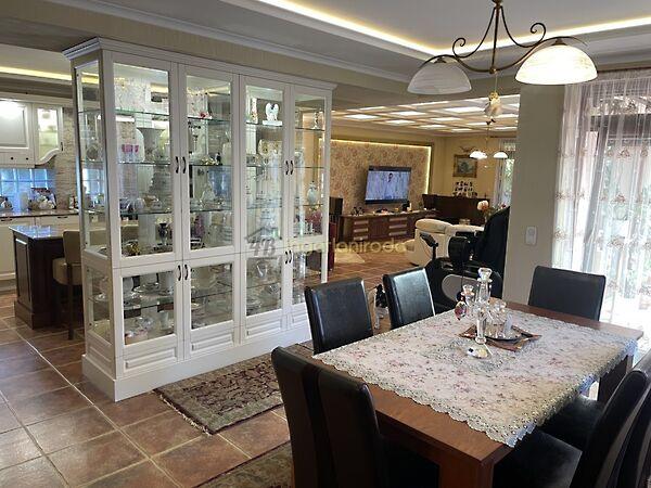 Nyíregyháza Oros között, közel a városhoz eladásra kínálok egy igényes, nagyon szép állapotú, 3 hálószobás+amerikai konyhás nappalis, 2 fürdőszobás, 227 m2 hasznos alapterületű, mediterrán stílusú, szintes, családi házat 15 m2-es télikerttel, mely műanyag nyílászárós, 15 m2-es fedett terasszal, az emeleten 30 m2-es terasszal, A ház alagsorában kialakításra került egy szabadidős tevékenységre alkalmas nappali, konditerem, fürdőszoba zuhanyzóval, wc-vel, 6 személyes fin szauna. A kert 2000 m2-es, parkosított, öntözőberendezéssel ellátott, a bulizásra 50 m2 alapterületű kerti ház, beépített konyhával, kemencével szolgálja a lakók szórakozását. Az ingatlan klimatizált (5 db. hűtő-fűtő klímával) riasztóval ellátott. Irodai azonosító: 9735