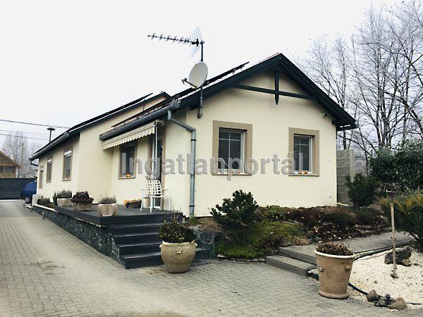 Szentendrei szigeten (Surány-Pócsmegyer), nagyon hangulatos szép rendezett családházas csendes környezetben, 2000-ben épült, egyedi tervezésű könnyű szerkezetes TEHERMENTES egyszintes 100 nm lakóterű (nagy belmagasságú tágas nappali-étkező-konyha, 2 háló, gardrób, fürdő-WC, kamra + egy külön bejáratú garzon szoba-konyha-fürdő), újszerű családi ház, minőségi nyílászárókkal, nagy teraszokkal, kocsi beállóval (több autó is kényelmesen elfér a telken), 60 nm garázzsal, nagy mosókonyhával, nagy fedett kerti szaletlivel, 1080 nm-es szépen parkosított sík telken eladó.