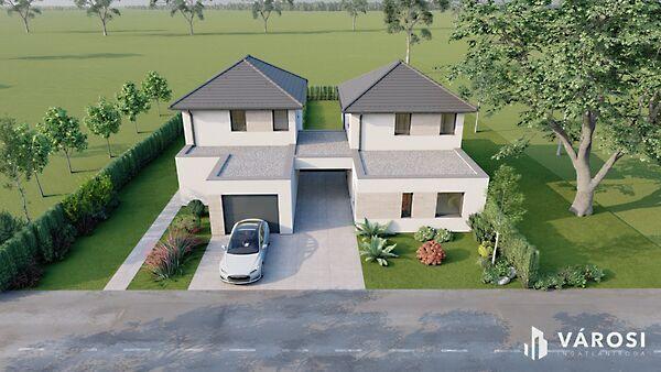 A 989m2-es telken ikerházas építkezés kezdődött meg, a belső kétszintes kialakítású házaknak nincs közös falazata, a két lakást fedett gépkocsibeálló köti össze, önálló bejárattal rendelkezik mindkettő az utcafrontról, így önálló házként funkcionálnak, a privát szféra garantált!