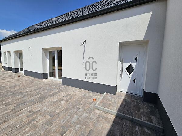 Terasz illetve az udvar térkővel burkolt, jelenleg folyamatban vannak ezen munkálatok. Az udvaron 2 állásos garázs áll rendelkezésre.