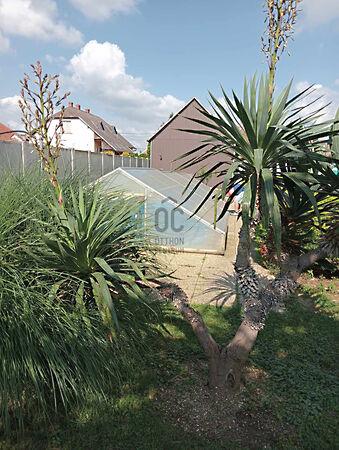 Kert -a fotókon látható- parkosított, gondozott zárt kerítéssel körülvett minden irányból. 7x3 méteres medence teljesen felszerelt gépházzal nyújt nyáron kellemes lazítást tulajdonosainak. Helyett kapott a medence közelében egy vizesblokkal felszerelt nyárilak, amely a pihenést ,kerti sütögetést, vendégek elszállásolását teszi lehetővé.