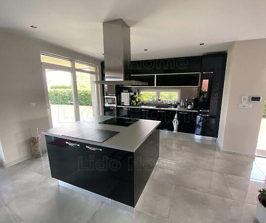 Riasztó- és kamerarendszer kiépítve. Elektromos alu redőnyök mindenhol. Magasfényű egyedi tervezésű konyha.