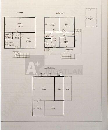 Melléképület : dupla garázs 38,42 m2, tároló 12,93 m2, góré 12 m2-es , ól 25m2-es és egy udvari , ugyanakkor angol wc .Az épületek mögött pedig a kert , gyümölcsfákkal .