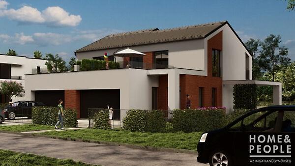 Újszegeden a Kállay ligetben, nyugodt átjáróforgalom mentes zsák utcában, gyönyörű környezetben új építésű ikerház eladó!