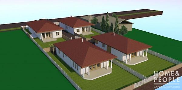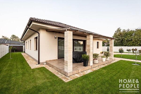 Földszintes: amerikai konyhás nappali, 3 db hálószoba, wc/háztartási helyiség, fürdőszoba, előszoba,kamra, 2 fedett terasz (23m2 + 6m2)