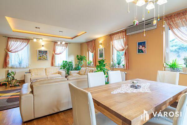 mind a nappaliból, mind a szülői hálóból megközelíthető. Az ingatlan gondozott előkerttel és