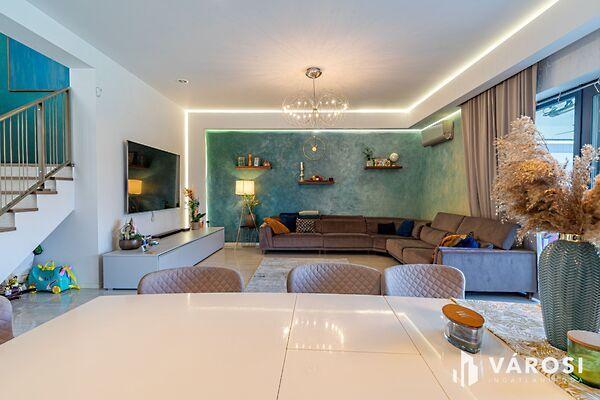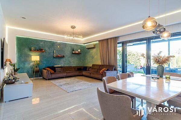 Prémium kategóriás családi ház, zöld övezetben Újszegeden! Az ingatlan mind tervezésében, valamint kivitelezésében megfelel a legmagasabb minőségi elvárásoknak, a 769 négyzetméteres telken épült 280 négyzetméteres családi ház ideális választás nagycsaládosok, illetve tágas tereket igénylők számára is, hiszen 5 hálószobás elrendelkezésével minden lakónak lehetőséget ad a privát szférára. Ráadásul egy 3 férőhelyes garázs biztosítja, hogy mindig kényelmesen parkolhasson.
