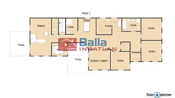 Az ingatlan beosztása: előszoba, 6 szoba, 2 fürdőszoba, Wc,