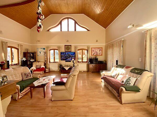 A 360 m²-es precízen és szakszerűen összeszerelt épület eredetileg rendezvények céljára készült, hűen megőrizve a hagyományos székely építészet minden részletét. A ház belső terének kialakítása nem lett befejezve. A tetőtér beépíthető, több szoba kialakítható. Ideális lehet rendezvények, elvonulások vagy képzések helyszínéül, de akár étterem vagy szálláshely céljára is. Ideális lehet alapítványoknak, vadásztársaságoknak vagy természetgyógyász központnak.
